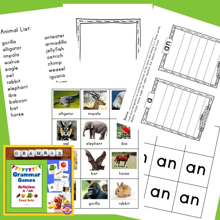 ⭐This Language Arts download includes a poster explaining the correct usage of the articles ‘a’ and ‘an‘, and two different center activities. I have several grammar game editions – This one is the Food Set edition.
