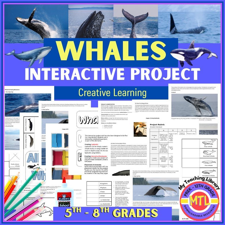Excite students as they learn all about whales and create an interactive project with this life science, hands-on, creative resource. This nonfiction science unit makes learning about baleen whales and toothed whales interesting and will help students develop reading, research, writing and organizational skills.