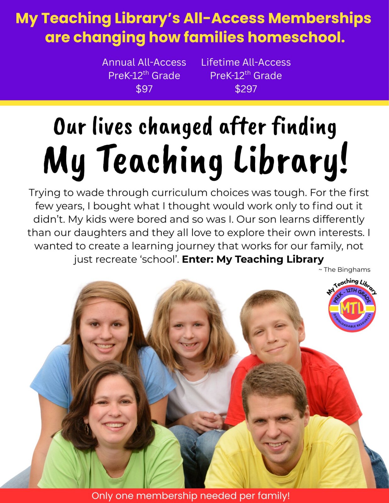 - - Lifetime Membership: An affordable one-time payment for unlimited access to the entire library for as long as you teach!